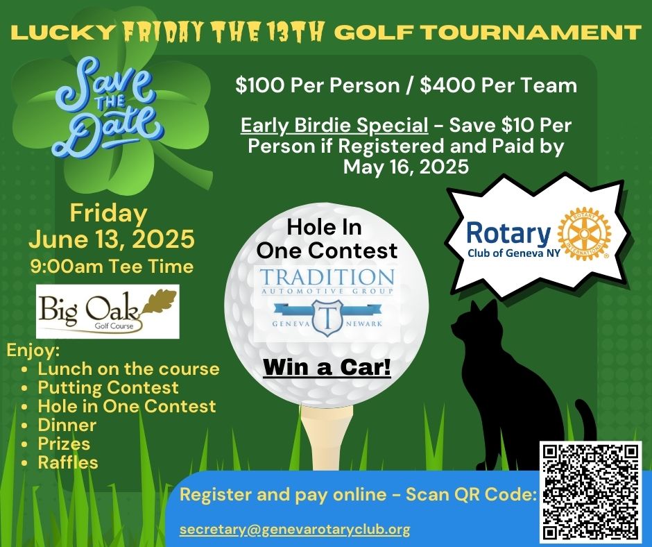 Is 13 your lucky number? Do you walk under ladders? Do you tempt black cats to cross your path? If so, the Geneva Rotary Club Golf Tournament is for you!